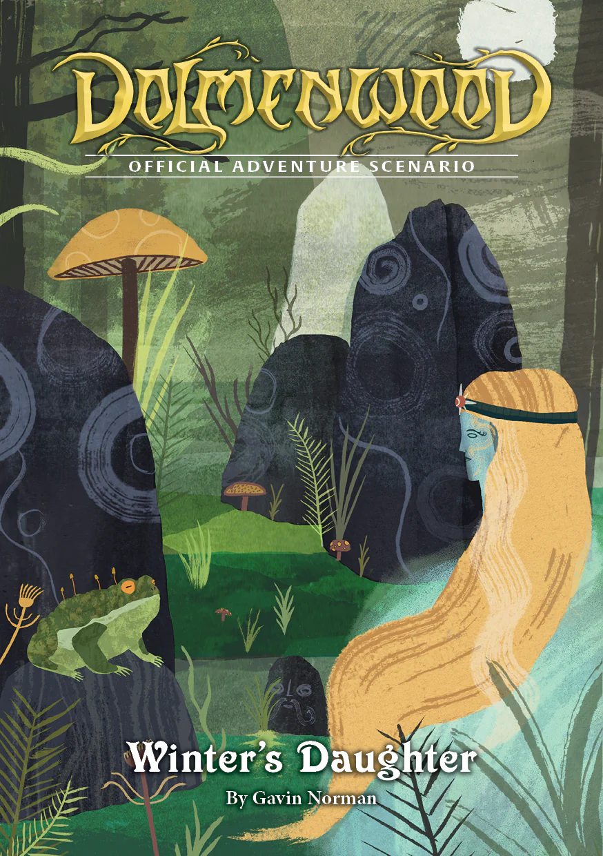 OSE Dolmenwood Winter’s Daughter brings romantic fairy tale adventure to your Old School Essentials table. This official adventure scenario weaves together ancient tombs, druidic mysteries, and otherworldly romance in the haunting Dolmenwood setting.