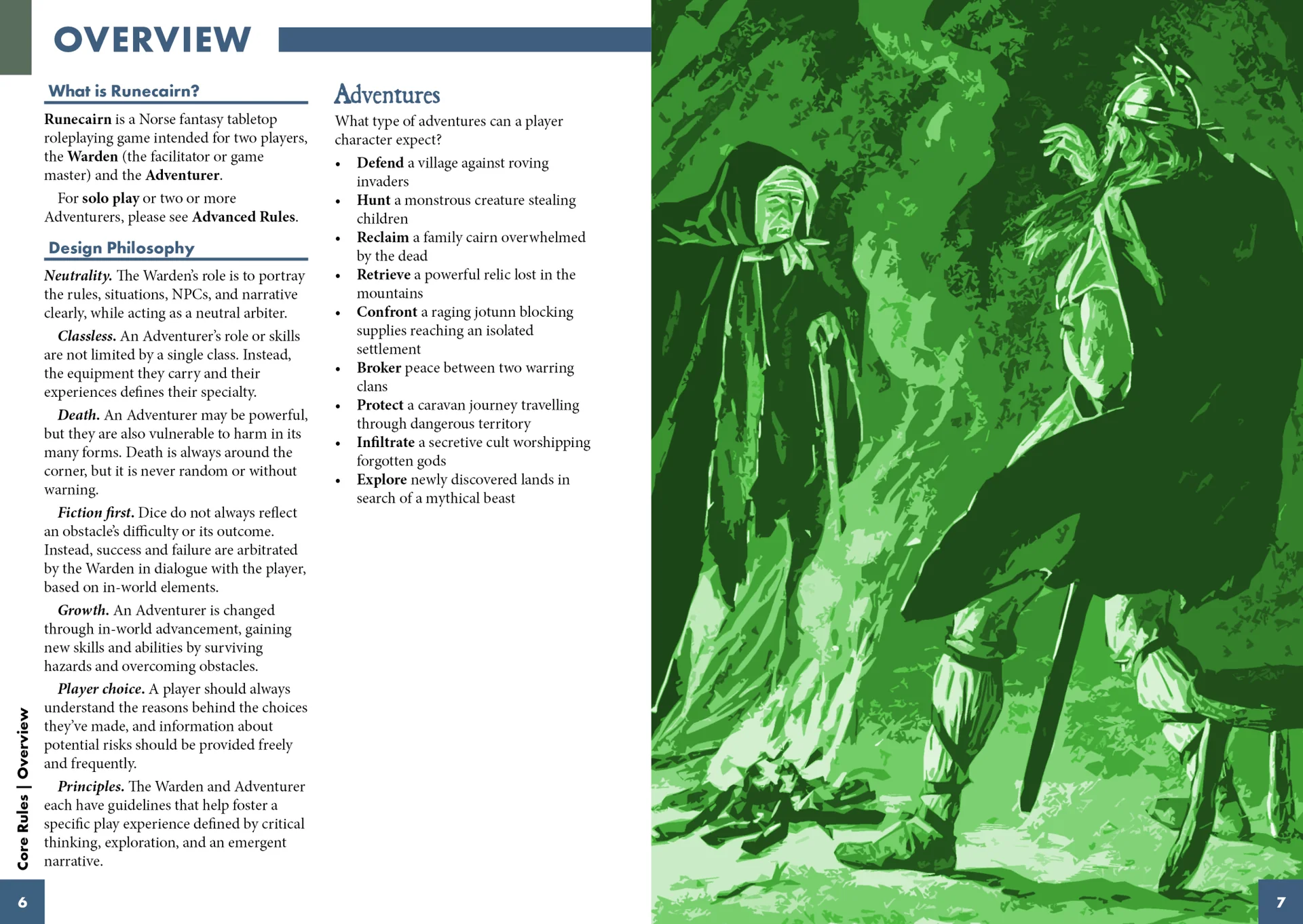Runecairn: Wardensaga RPG is a hardcover tabletop RPG set in post-apocalyptic Norse mythology where new life grows among divine ruins.